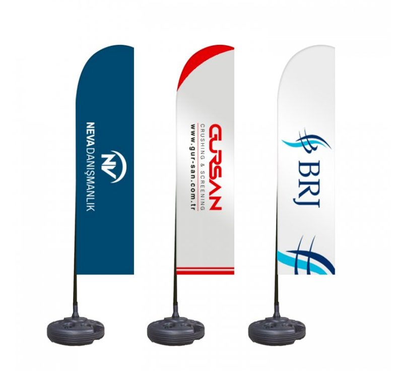 Plaj veya dış mekan bayrakları, açılışlar ve etkinliklerde markanızı öne çıkarır.